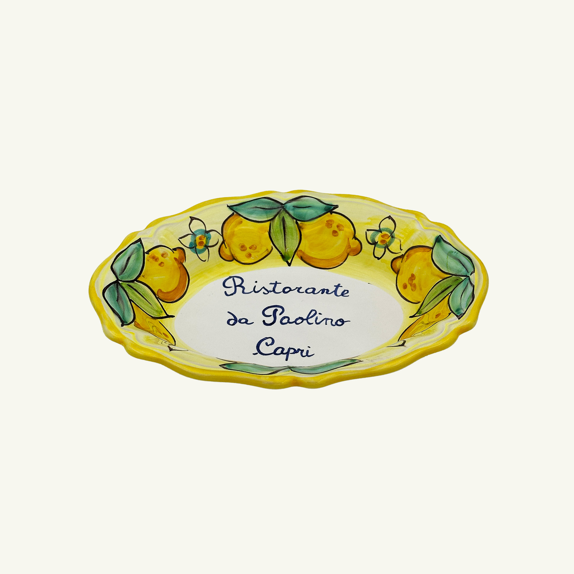 Vietri ceramic bread basket designed by Paolino Style and decorated by hand