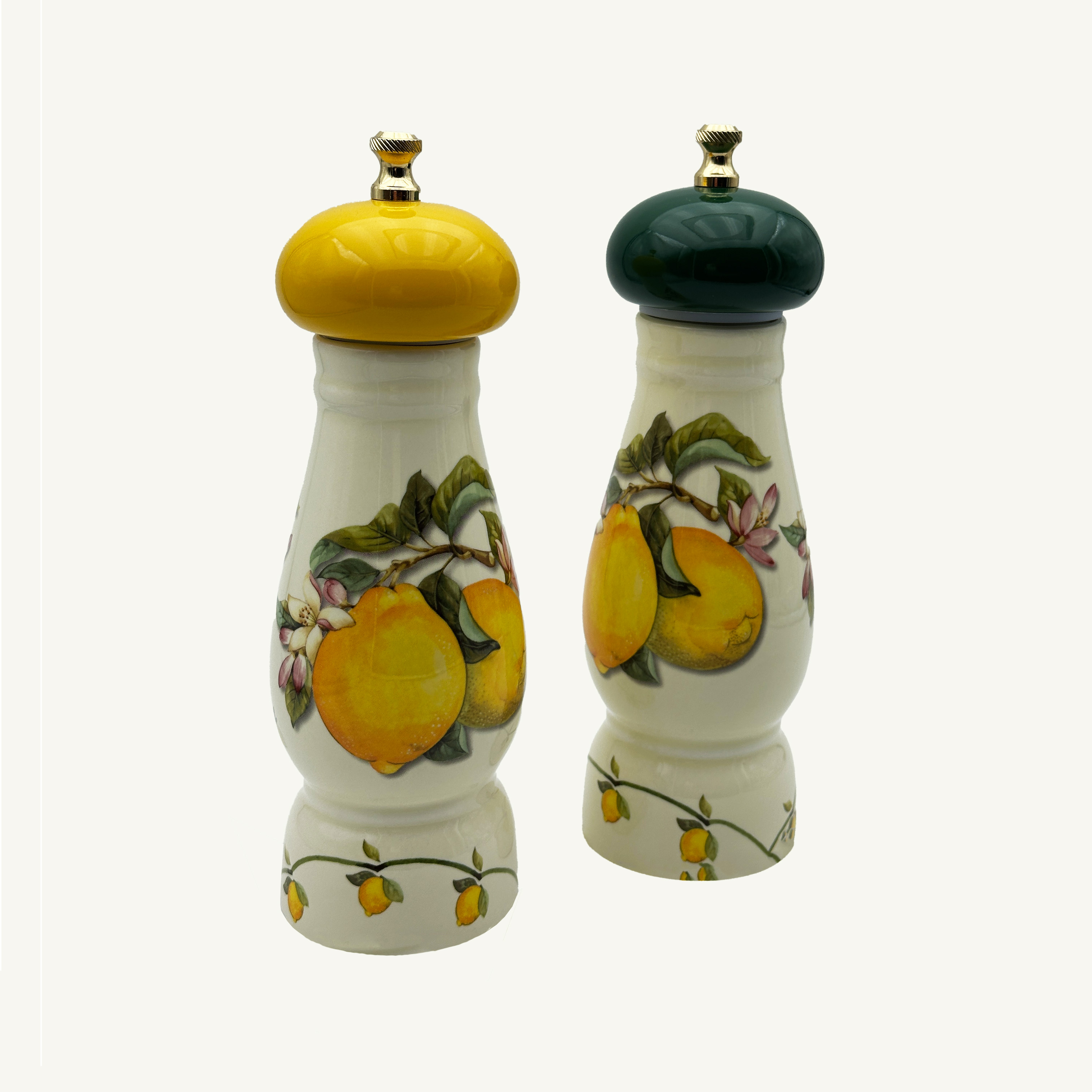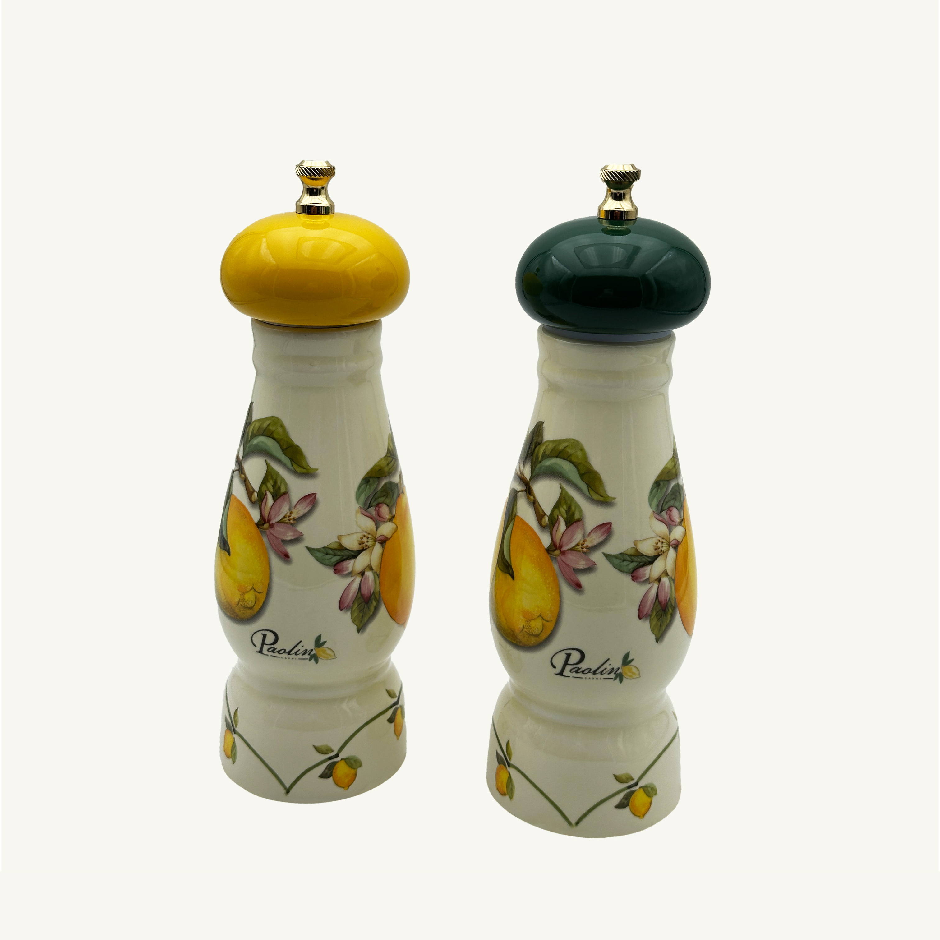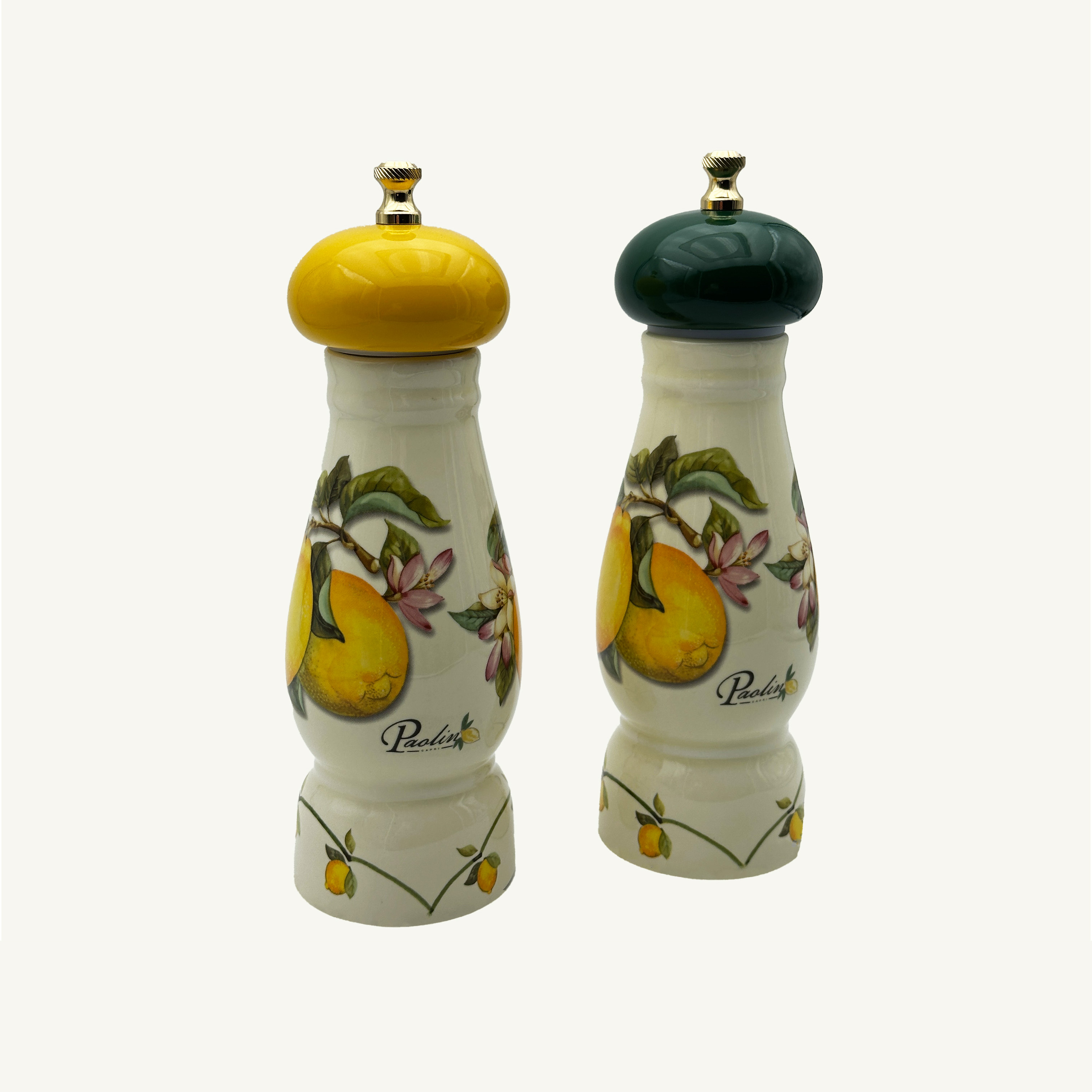 Coppia di macina pepe e macina sale in ceramica realizzata a mano e disegnata da Paolino Style